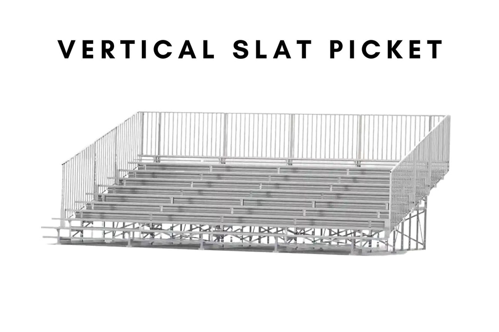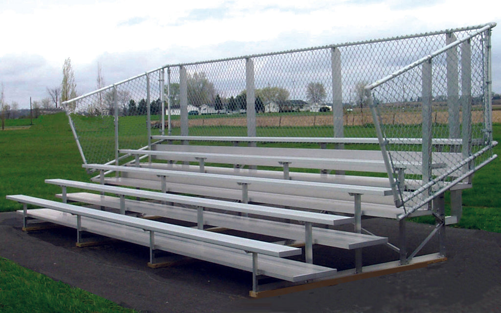 The 5 Row Preferred Aluminum Bleachers offers a significant upgrade from the standard model, designed to enhance spectator comfort and safety. These non-elevated bleachers feature anodized seat planks and double mill finish foot planks on all rows, providing durable and comfortable seating. The inclusion of riser planks on rows 4 and above enhances visibility for spectators. The bleachers are available in various lengths, accommodating 50 to 90 seats, making them suitable for a range of events and venues. Guardrails are included on all systems with five rows of seating or more, ensuring adherence to safety codes. The bleachers are constructed with a robust aluminum/galvanized angle understructure and offer a choice of chain-link or vertical picket guardrail systems. Additionally, they come with a warranty, ensuring quality and customer satisfaction.